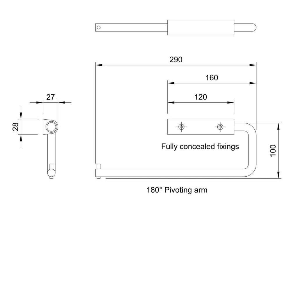 Dimensions : 100 hauteur, 290 largeur, 28 projection (mm)