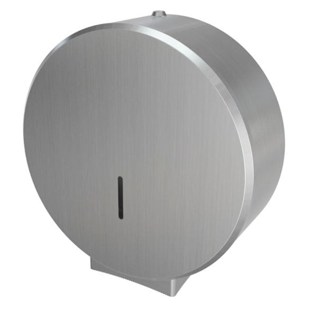 Ce distributeur de papier toilette géant est idéal pour les sanitaires exclusifs des bureaux et des hôtels. Il convient aux rouleaux jusqu'à 260 ou 270 mm de diamètre, selon la taille du distributeur. Il permet de longs intervalles de réapprovisionnement dans les lieux à faible et moyenne fréquentation. Conçu pour une fixation murale stable, ce porte-rouleau est durable grâce à sa fabrication en acier inoxydable de haute qualité et résiste au vandalisme grâce à son système de verrouillage à clé.