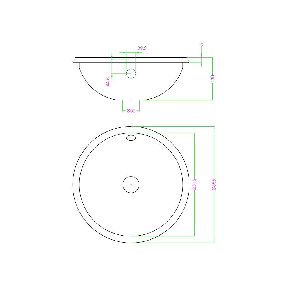 Lavabo à encastrer en acier inoxydable Mediclinics Ø355MM avec trop-plein