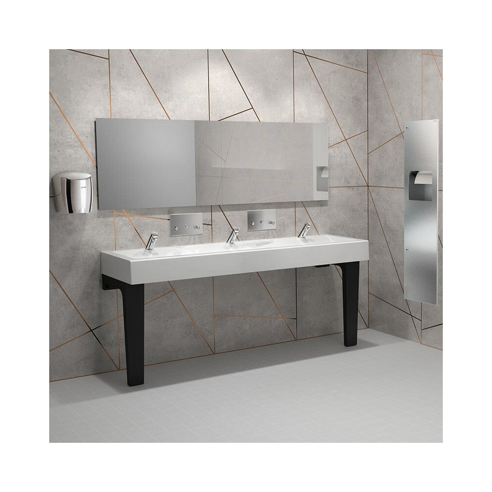 Le lavabo mural MINERALCAST avec 3 trous de robinetterie de Ø35 mm est disponible en longueur 1800 mm. Il est constitué d'un matériau composite composé de minéraux naturels et de résine polyester qui constitue une surface non poreuse, facile à nettoyer et agréable au toucher. Conforme à la norme européenne EN 14296, il apporte un évier élégant, mais sûr et durable à toutes les toilettes commerciales.