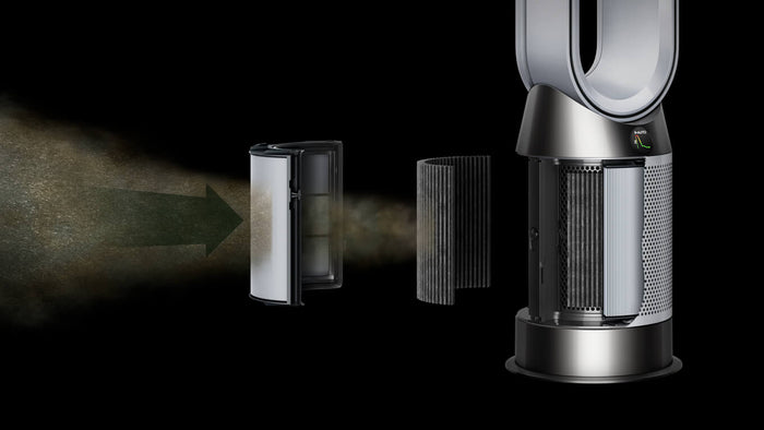 Le système de filtration entièrement étanche de Dyson comporte deux phases de purification pour piéger les polluants et les éliminer de l'air que vous respirez. Ainsi, ce qui entre à l'intérieur reste à l'intérieur³.