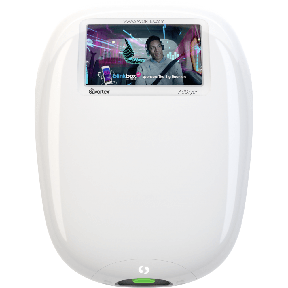 Bring a new level of convenience to your consumer, while at the same time creating a thoroughly eco-friendly washroom that delivers dynamic marketing campaigns to a captive audience. A low energy digital brushless motor, the AdDryer™ consumes just 550W, and hygienically dries hands in 11 seconds, offering the lowest cost and carbon per dry of any warm air dryer.