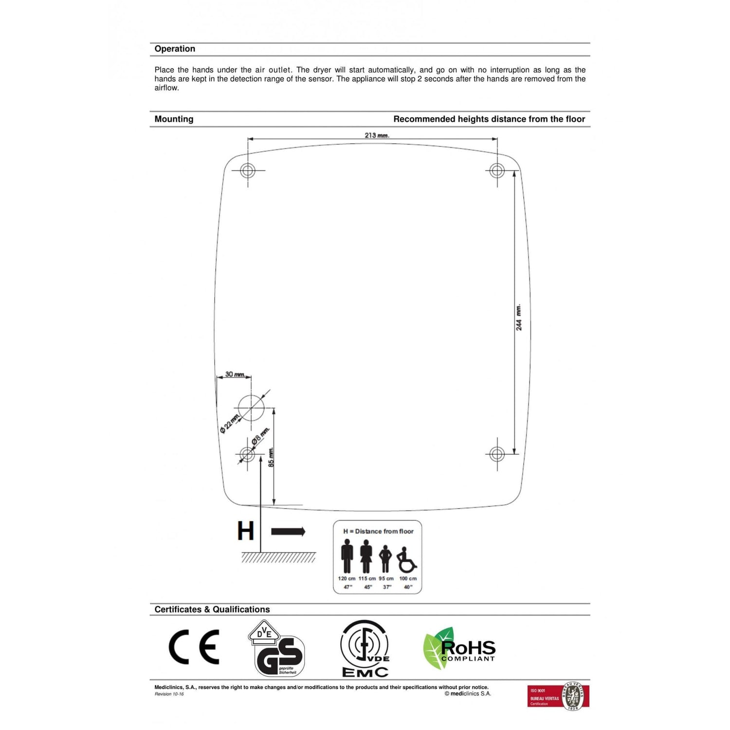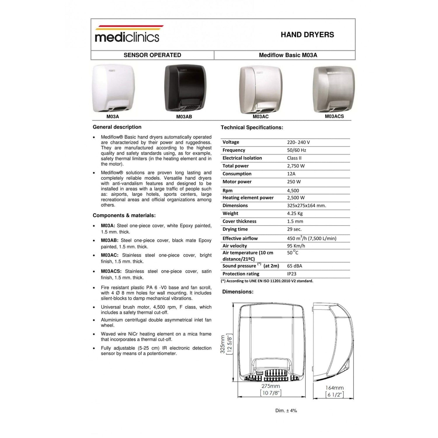 La gamma di asciuga mani Mediclinics Mediflow® è caratterizzata dalla sua resistenza e capacità di lunga durata. Funzionano automaticamente e includono una serie di funzioni antivandalo. Questi asciugamani sono progettati per essere installati in aree ad alto traffico come aeroporti, grandi alberghi, centri sportivi, grandi aree ricreative, organizzazioni ufficiali, ecc.