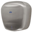 L'asciugatrice ATC Tiger ECO è un asciugatore dal design ultra moderno ad alta velocità, potente, veloce e robusto. La robusta copertura in acciaio inox è fissata tramite viti antivandaliche e il ridotto ingombro a parete garantisce un design ulteriormente robusto. Una velocità di asciugatura rapida di 15 secondi con un basso consumo energetico di soli 550 W consente a questo essiccatore di funzionare a costi bassi. Con 70 dB i livelli di rumore di questo asciuga mani sono molto bassi.