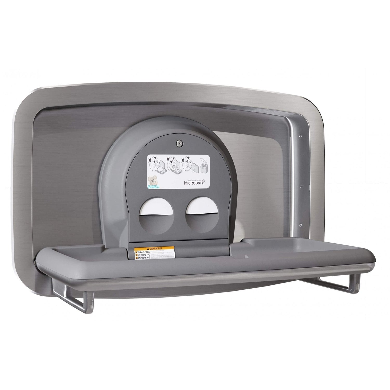 A beautiful yet functional unit, it complements modern washroom design and décor. KB310-SSRE-EN is a stainless steel recessed- mounted horizontal baby changing station. The bed surface contains Microban® antimicrobial product protection. This reduces the growth of microbes, maintaining a sanitary changing surface. The technology is manufactured into the changing station, so it won’t wash off or wear away, offering protection for the lifetime of the product.