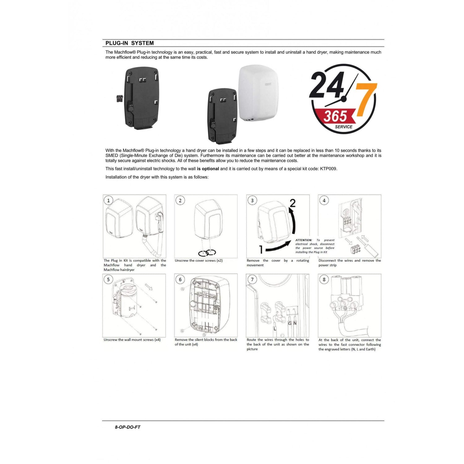 A plug-in system hand dryer, making it so easy to securely attach and detach the unit from the wall. Ideal for allowing trades access at any time during a fit-out. Also, should a fault occur, no need to pay and wait for someone to disconnect from the power supply. You have access to safely remove and replace the hand dryer 24 hours a day, 7 days a week.